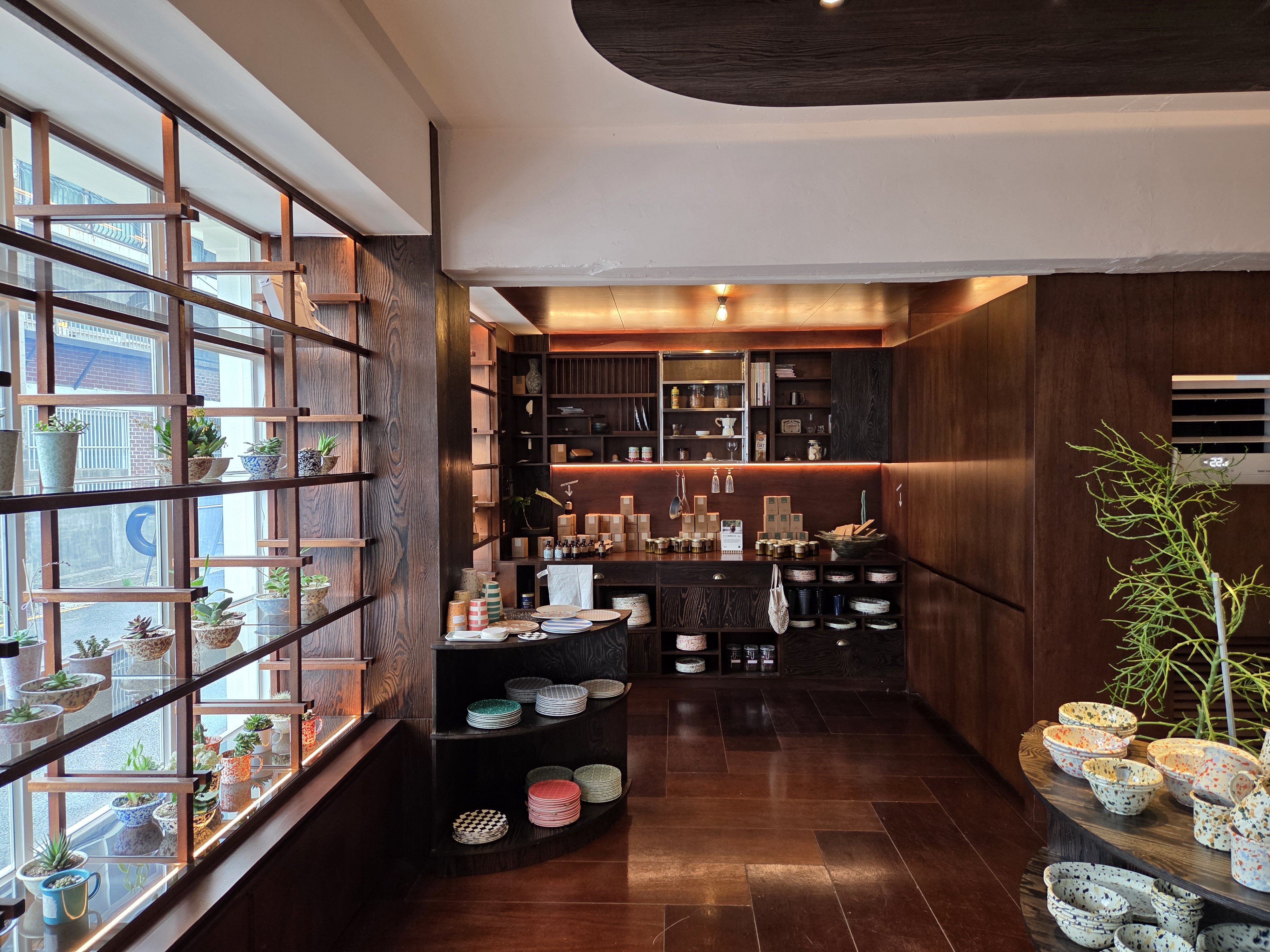 망원동은 특유의 빈티지하고 감성적인 골목들이 매력적인 곳이죠. 그중 크로우캐년 매장은 브릭 건물 외관부터 내부까지 레트로 무드로 가득해요. 매장에 들어서면 각양각색의 마블 패턴 식기가 층층이 진열되어 있어 시선을 사로잡습니다.